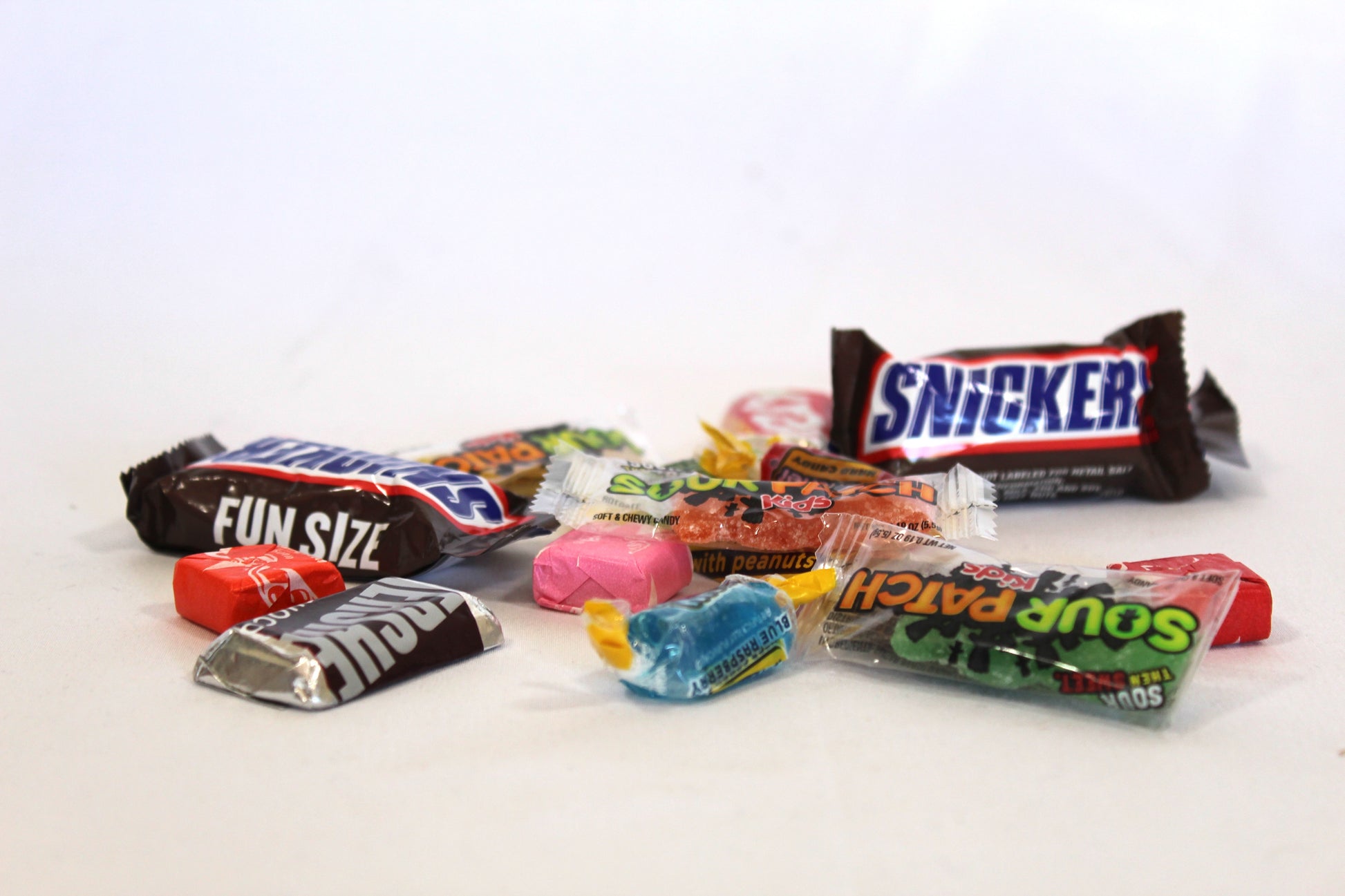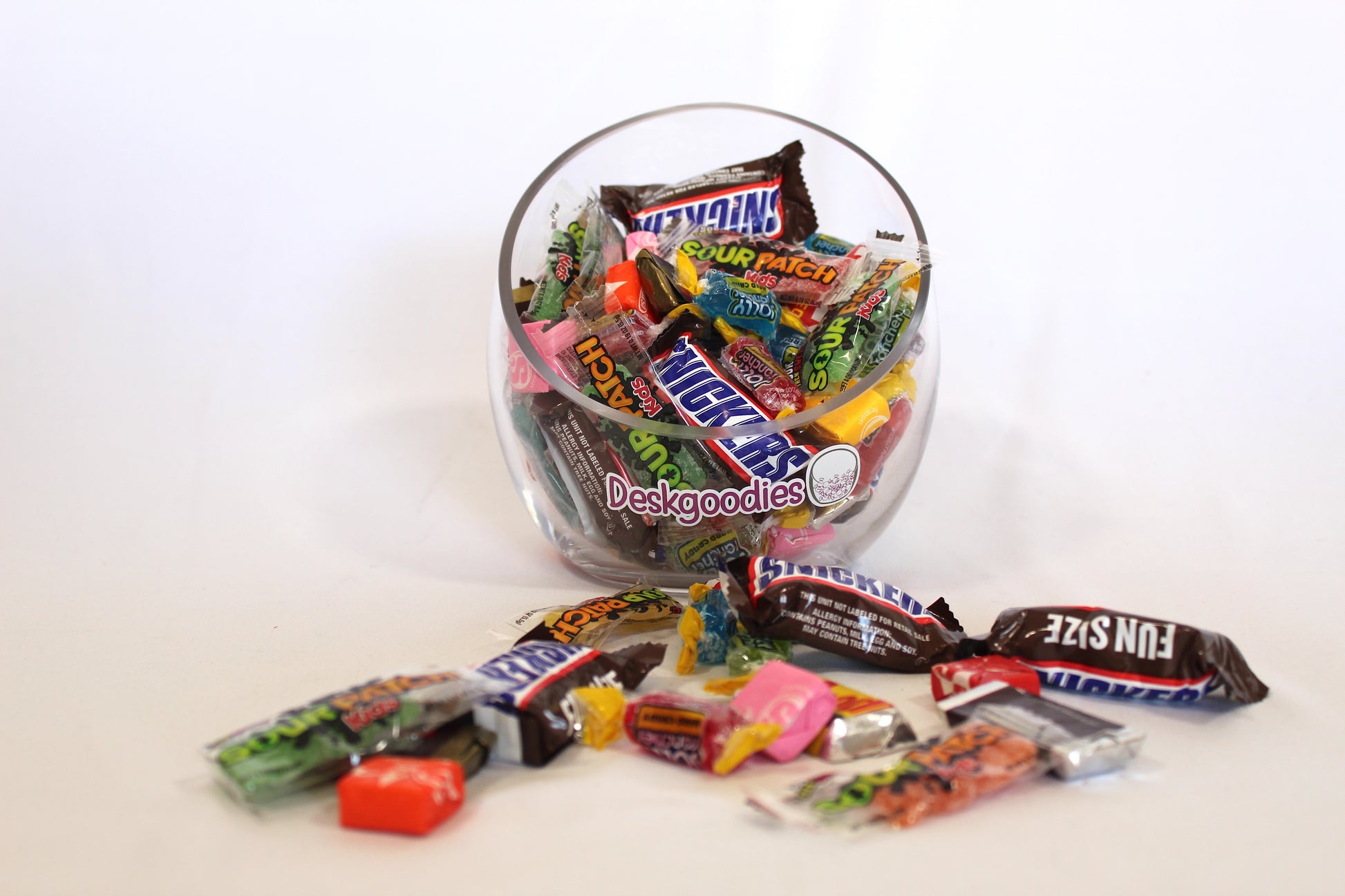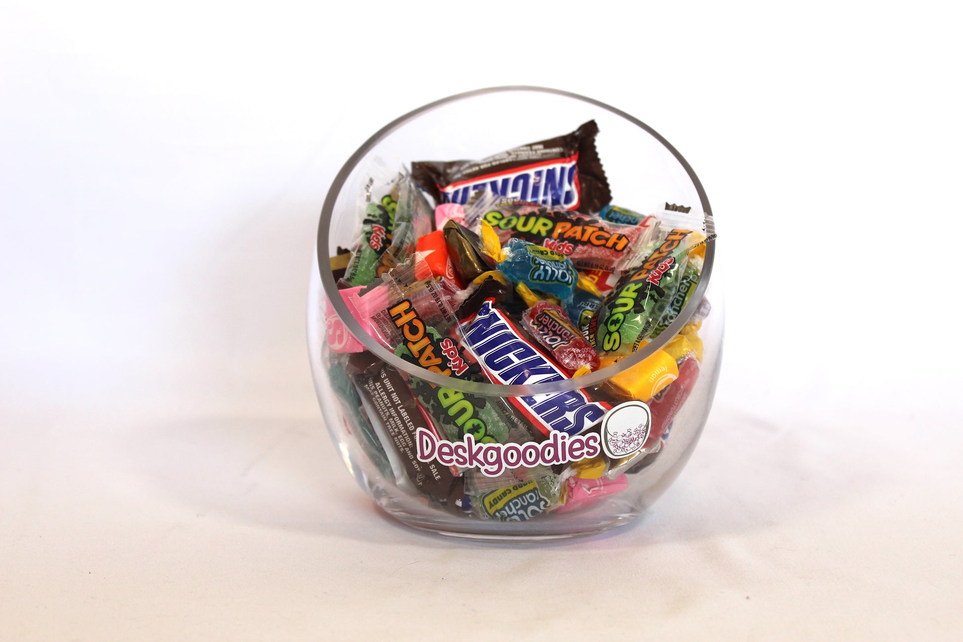 This candy subscription includes: Sour Patch, Snickers, Hershey Mini Assortment, Starburst, and Jolly Rancher.