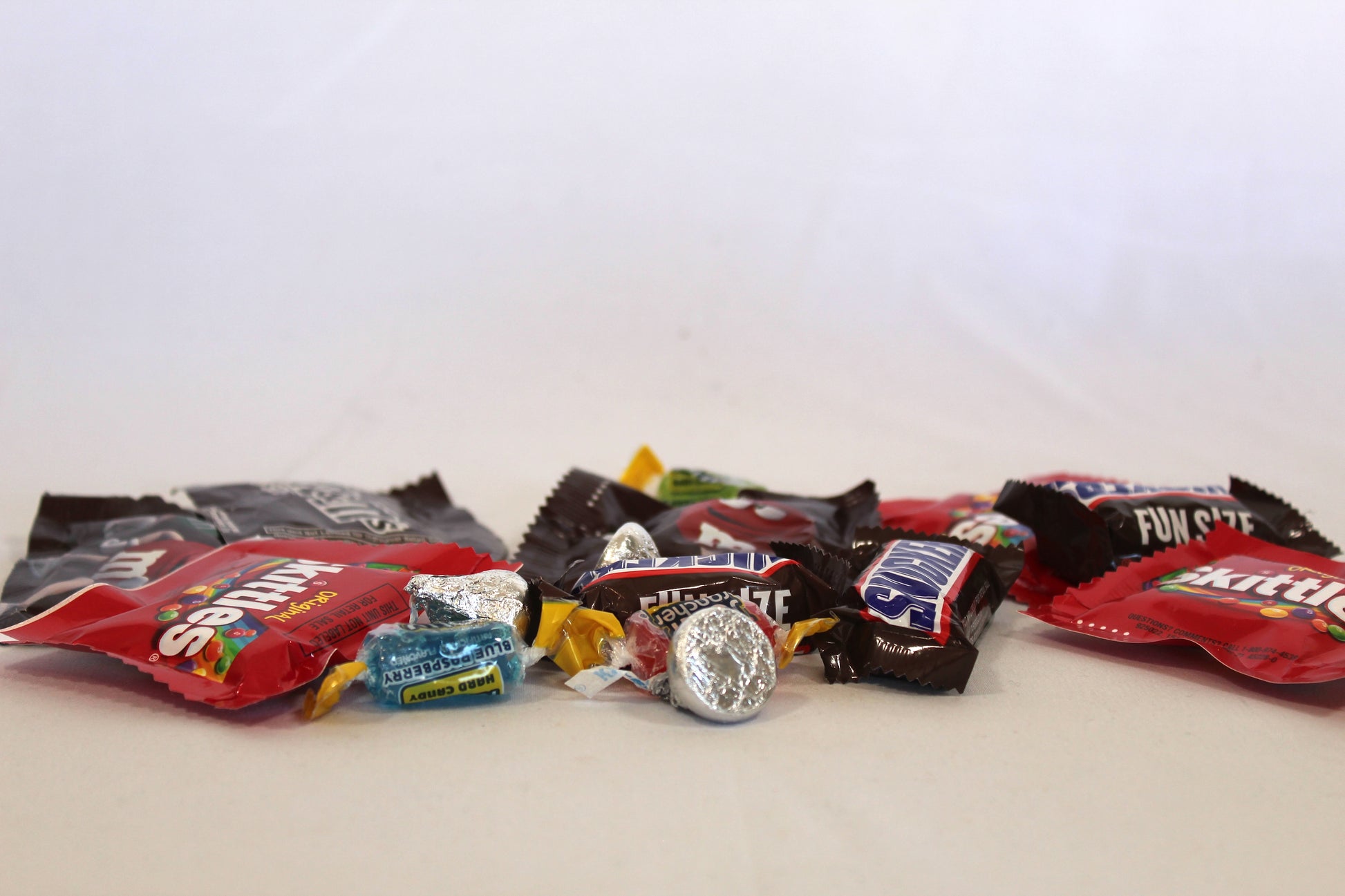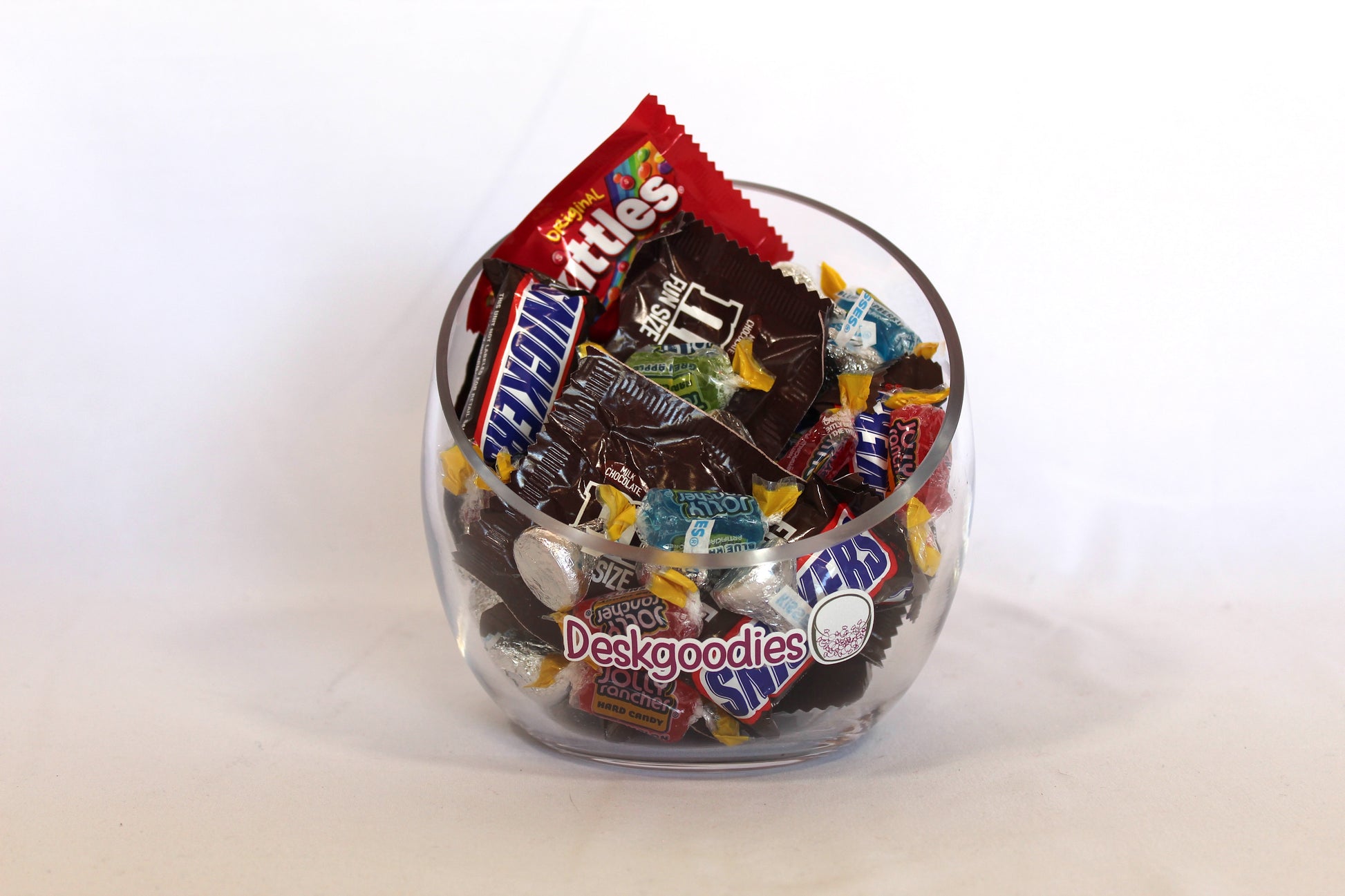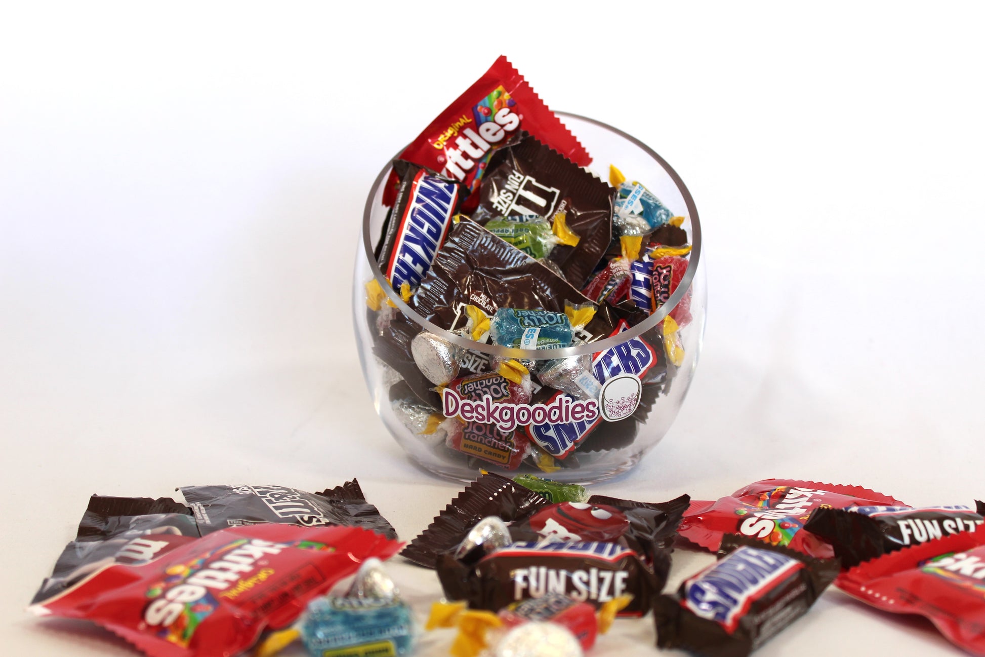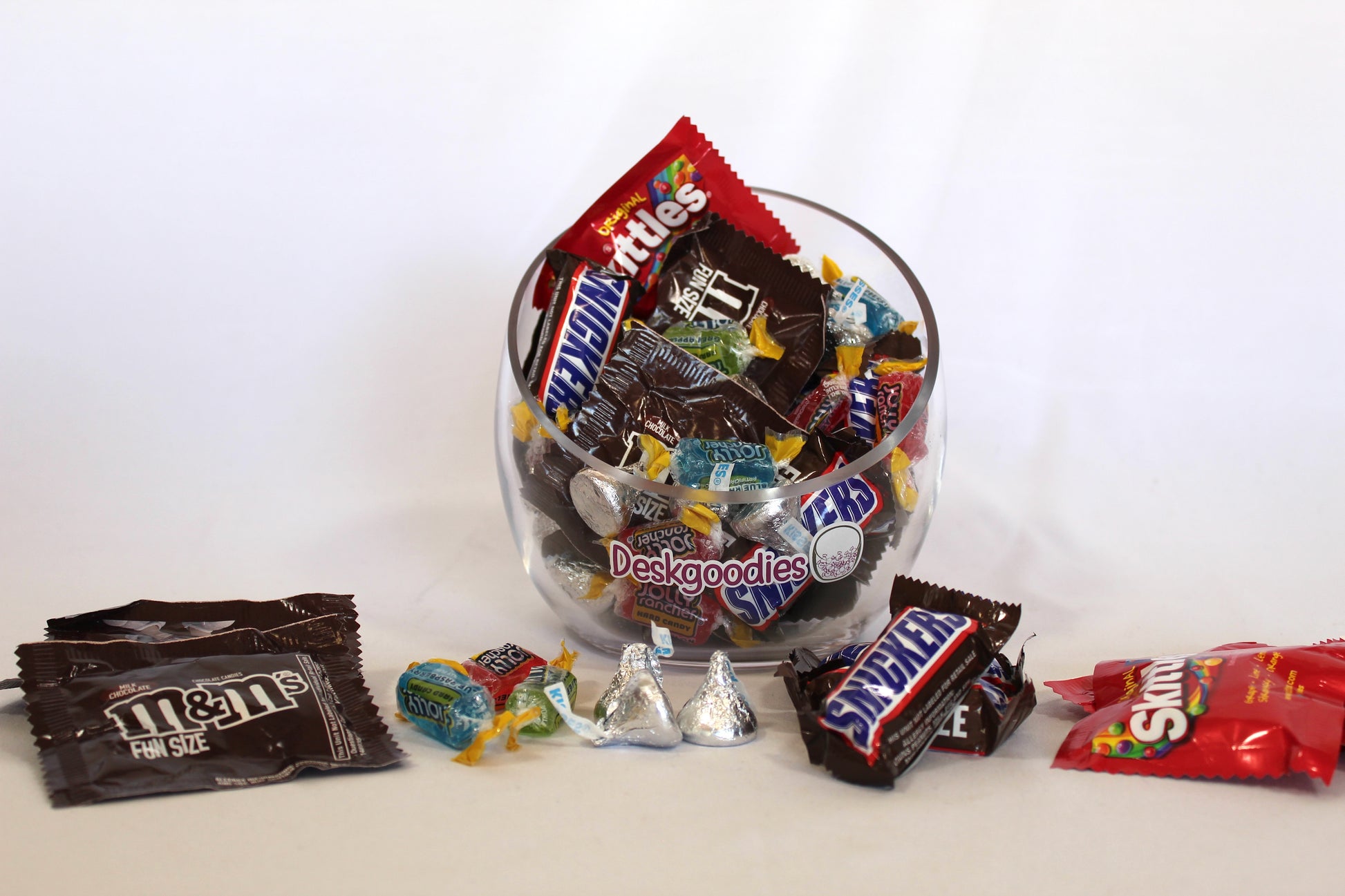 This candy subscription includes: Skittles, M&M's, Snickers, Hershey Kisses, and Jolly Ranchers.